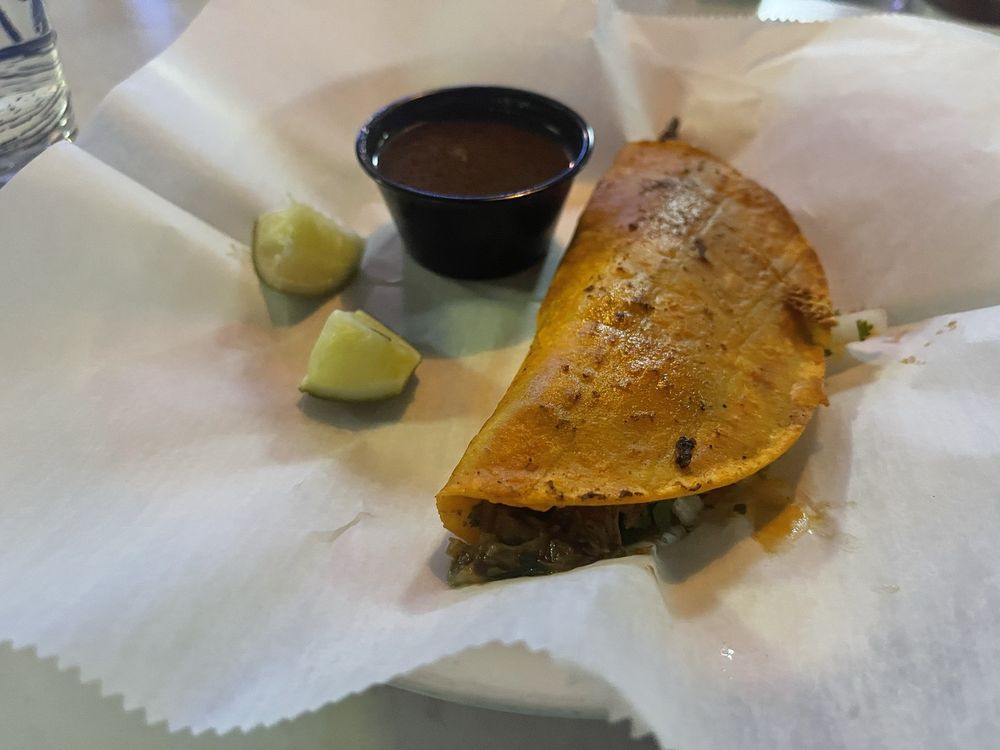 Fry tortilla with queso dip pico fresh jalapenos y carne asada.